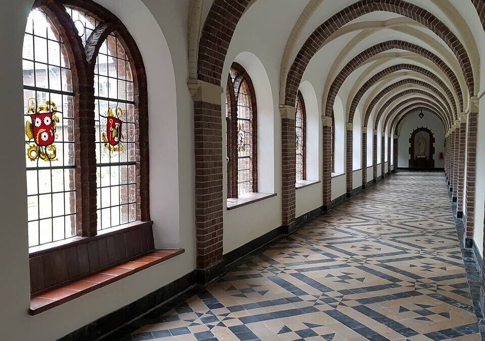 U wordt om 14.00 uur verwacht. De gids wacht op u bij de boom, midden op de binnenplaats van de abdij. U komt bij de binnenplaats door de poort met de tekst ‘Ora et Labora’. Dit was het devies: bid en werk.