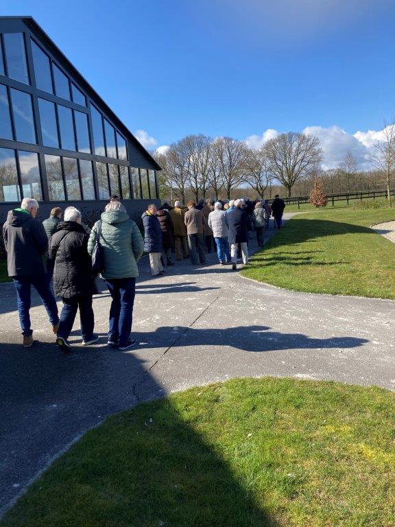 De hengstenhouderij hebben we niet gezien omdat die op locatie Rijksweg 45 ligt en “te klein“ was voor ons grote aantal bezoekers. Maar het trainen, de stallen, de vervoerswagens hebben we kunnen bekijken. Ook hoorden we hoeveel geld er in dit bedrijf omgaat bij koop en verkoop van de springpaarden…De 600 paarden staan niet allemaal in Kessel, maar ook in Polen, België en andere plaatsen in Nederland.